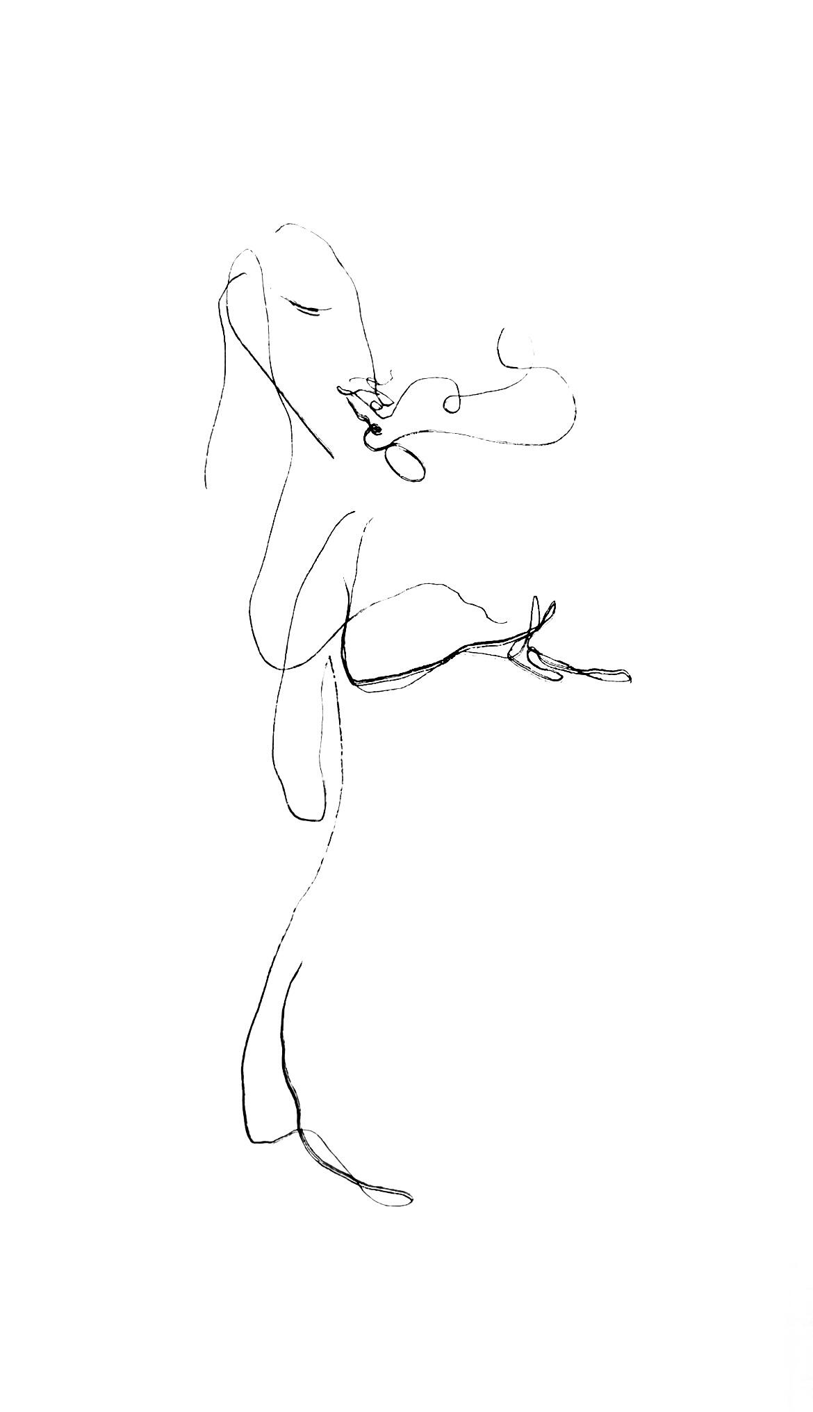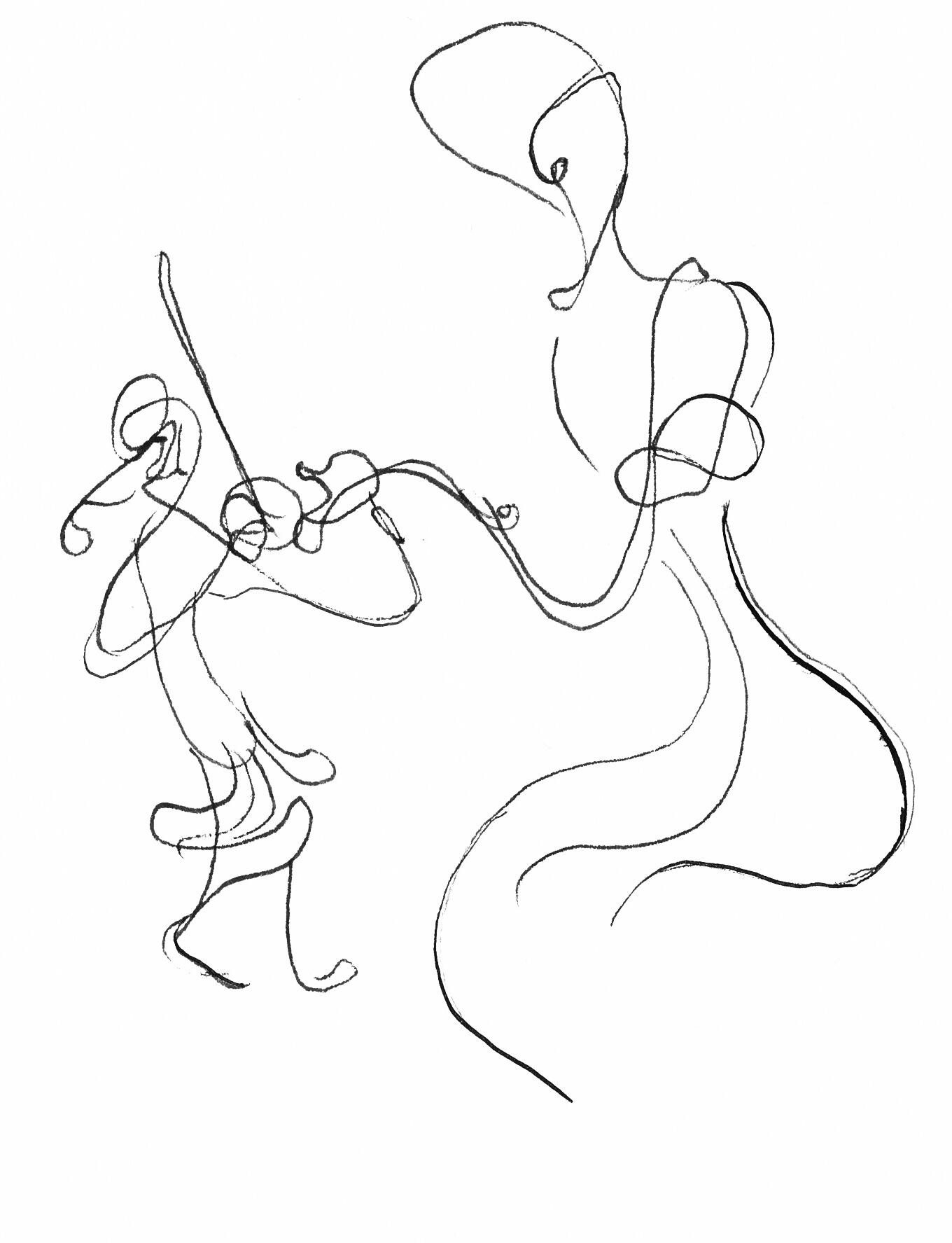 Working with media of aquarelle, ink, and digital.Elaine creates her art by capturing the musicians movement in their live performances. Her hand moving like a rhythmic dance shaping the line drawn on the paper, changing along with the shifting emotions of the music. Creating dramatic and elegant to other times more abstract and humorous depictions.Letting the audience look into her interpretations of the music. Leaving a physical piece to remember the feelings from the performance. Creating art of imagination and joy, for the audiance to explore, see and listen to."I would simply discribe my work as a appriciation form one artform to a another. A loveletter addressed for music.”- Elaine